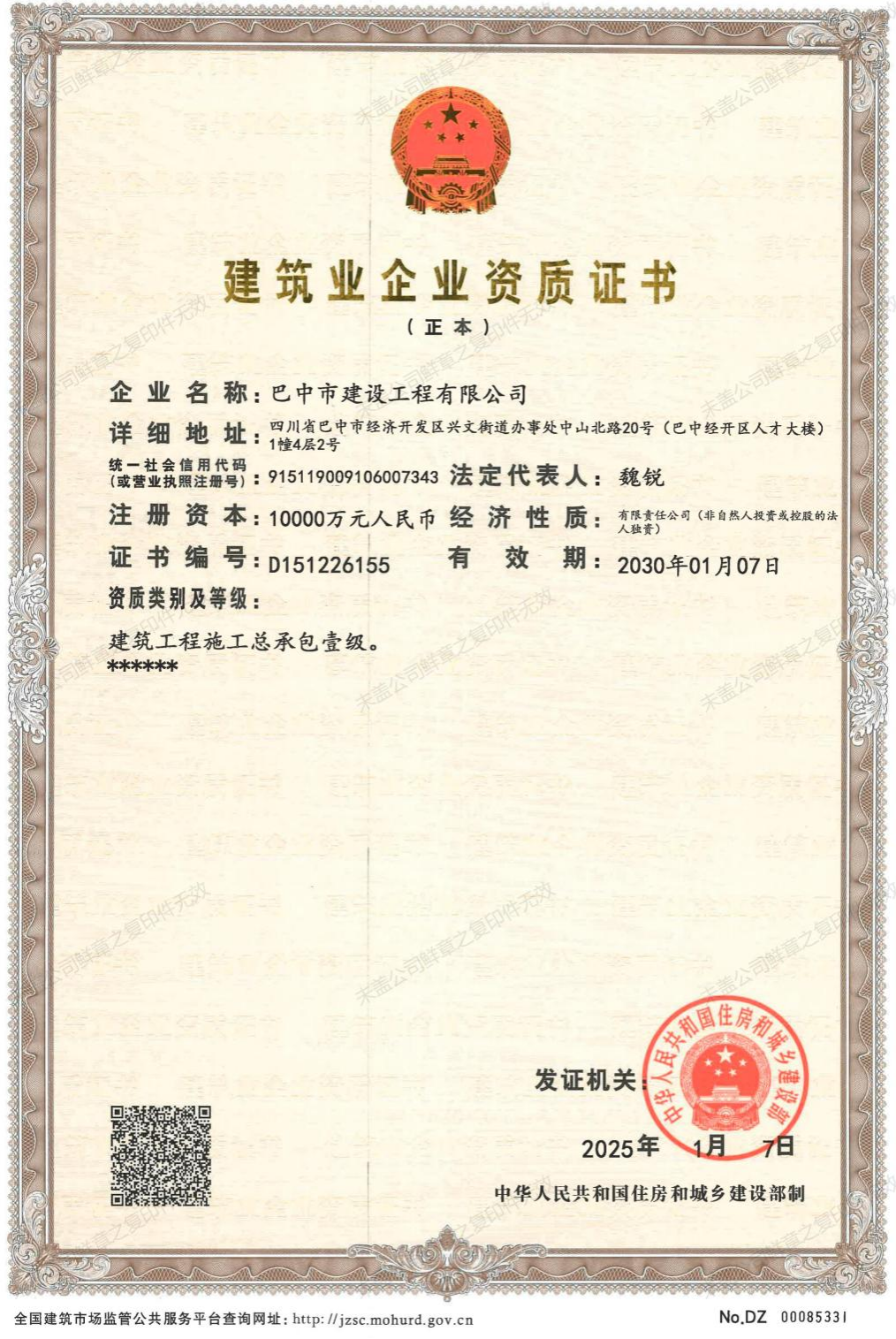 近日,经国家住建部核准,建工集团成功获得建筑工程施工总承包壹级资质。这是建工集团深入贯彻落实全市关于深化改革推动国有企业做大做优做强发展战略的一项重要举措,标志着建工集团正式迈入了建筑施工企业的第一方阵,填补了巴中市国有建筑企业施工总承包壹级资质的历史空白。