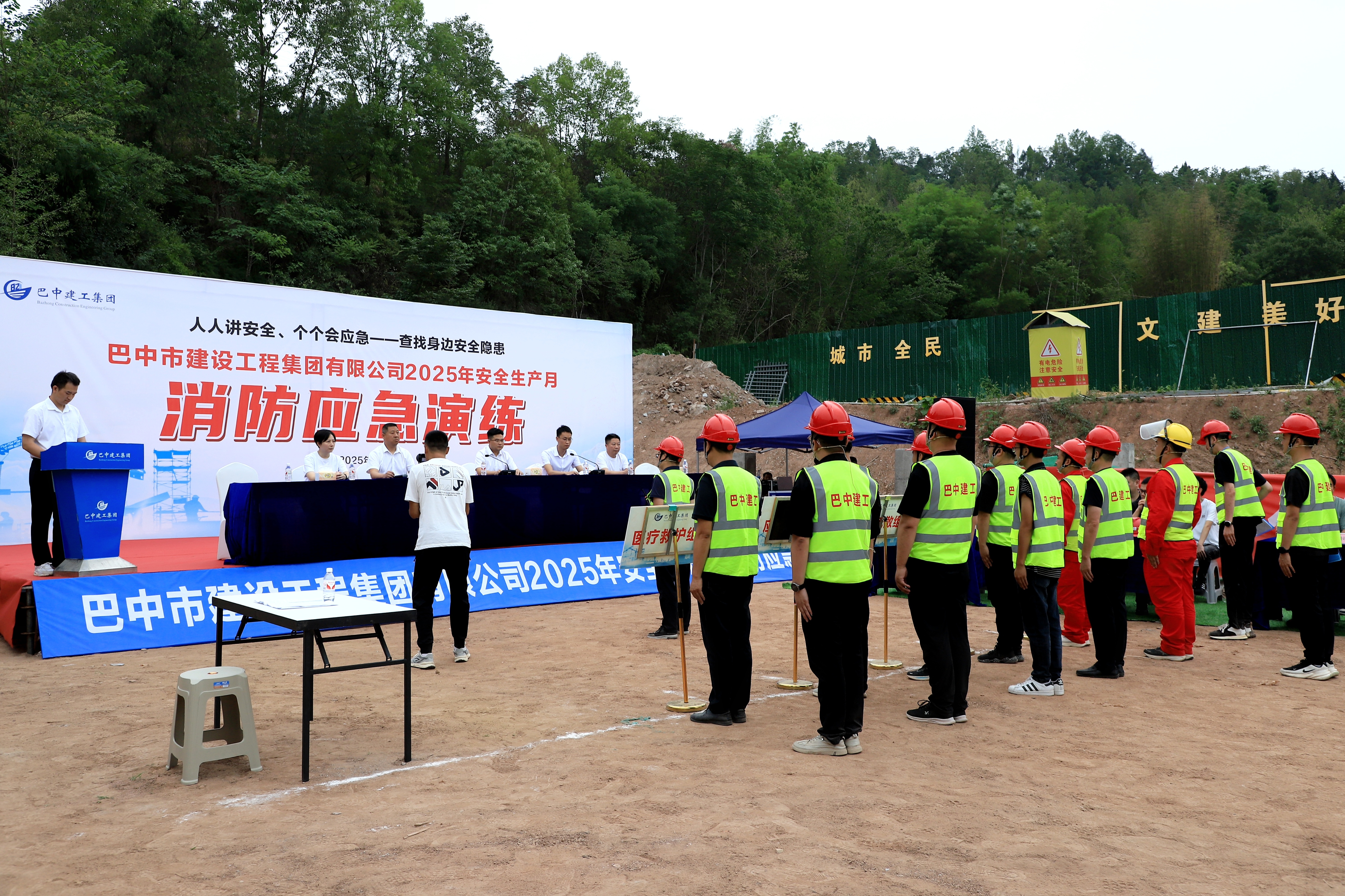 2025年6月24日,建工集团在兴文经开区二号加压站组织开展天然气管道安装工程火灾事故应急演练。建工集团领导班子成员现场观摩指导,公司本部及各子公司安全管理人员、职工代表参与演练。